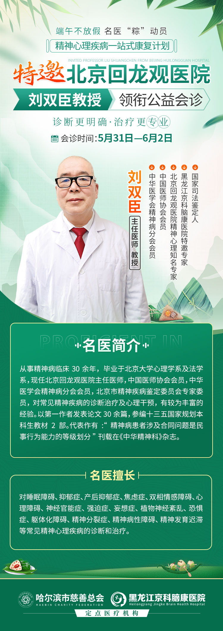 如果你也經歷過這些煎熬,這個端午節就是改變的開始!5月31日-6月2日,北京回龍觀醫院劉雙臣教授親自帶隊,連續三天不放假,專治失眠、焦慮、抑郁等心理問題。不用請假、不用奔波,家門口就能看北京專家!